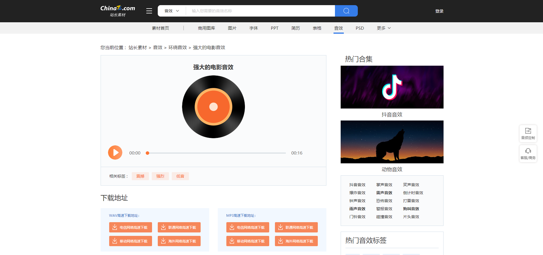 这个网站里面的所有音效都是可以免费下载的,声音分类非常的多,有人的声音,动物的声音,动作产生的声音,自然界的各种声音,非常逼真!平时剪辑可以用得上的声音几乎都有!